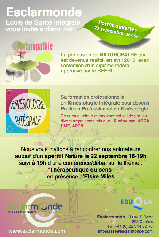 Esclarmonde peut se féliciter d’être aujourd’hui une école majeure en Suisse romande dans le domaine des thérapies complémentaires.